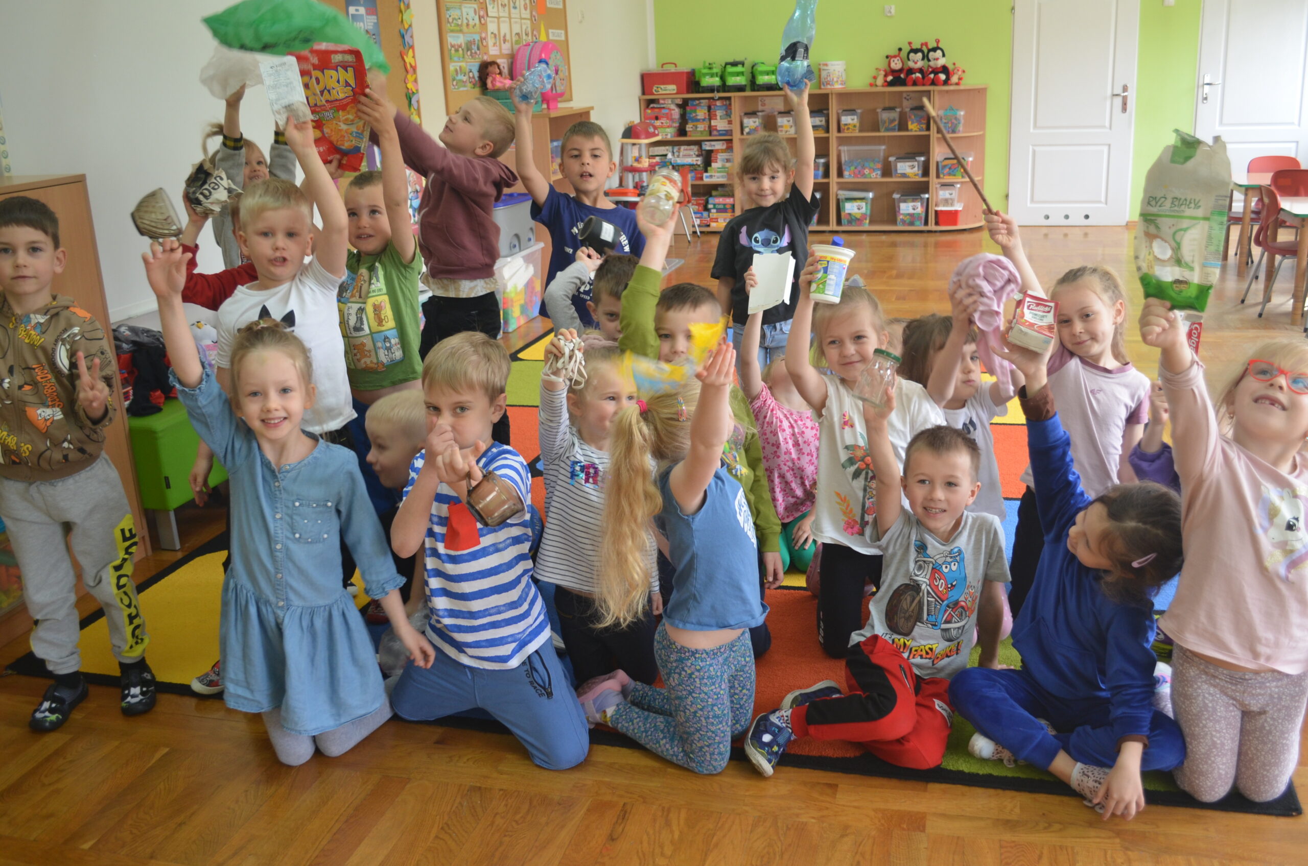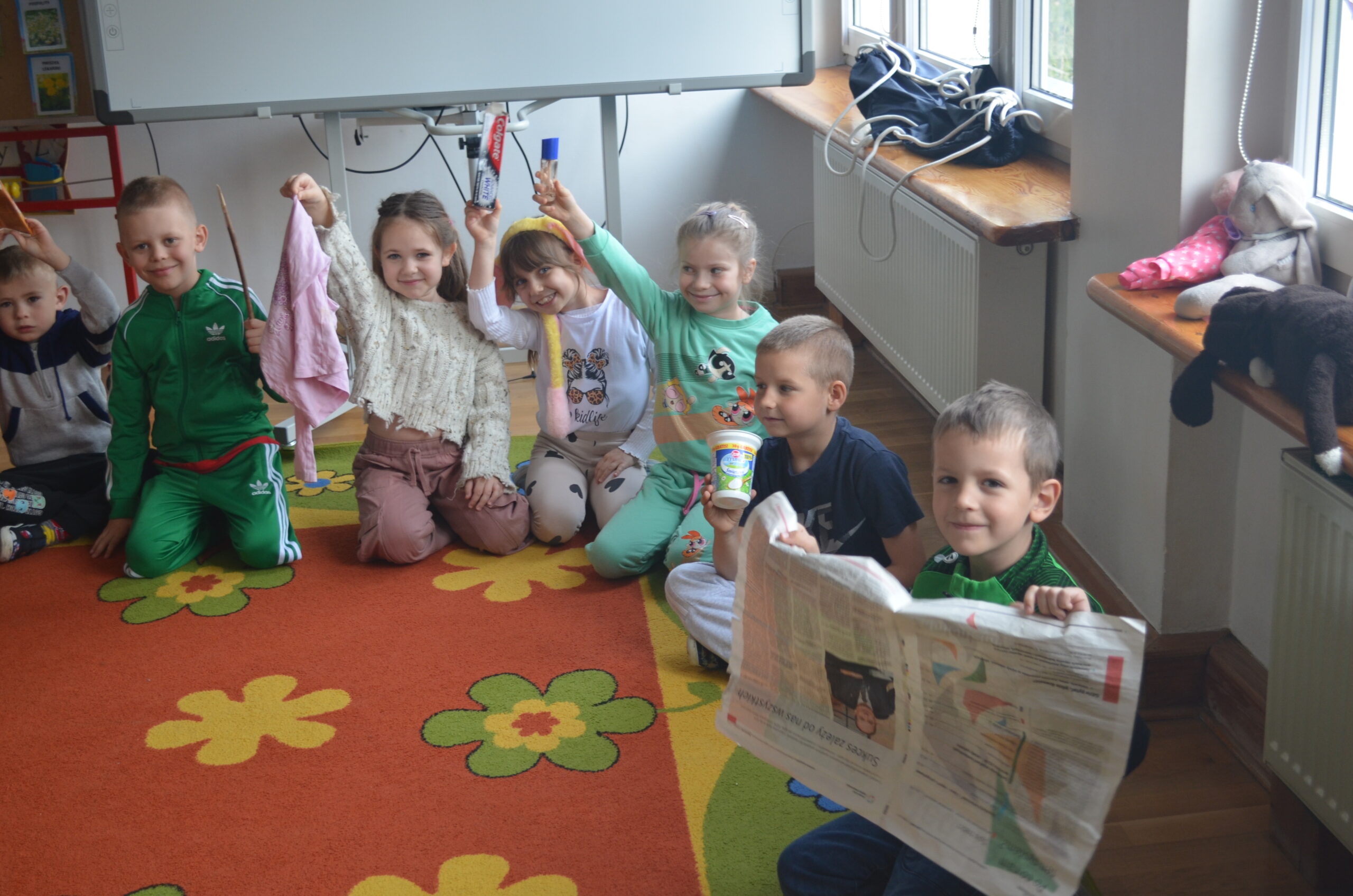 Także Maluchy z Przedszkola Miejskiego nr 2 „Słoneczko” w Polkowicach wzięły udział w warsztatach w dniu 29 kwietnia. Wraz z grupą 4-5 latków zgniatalismy butelki, żeby zajęły mniej miejsca w pojemniku, sprawdzaliśmy ilość energii w bateriach i malowaliśmy upcyklingowe kwiatuszki z rolek po papierze toaletowym.