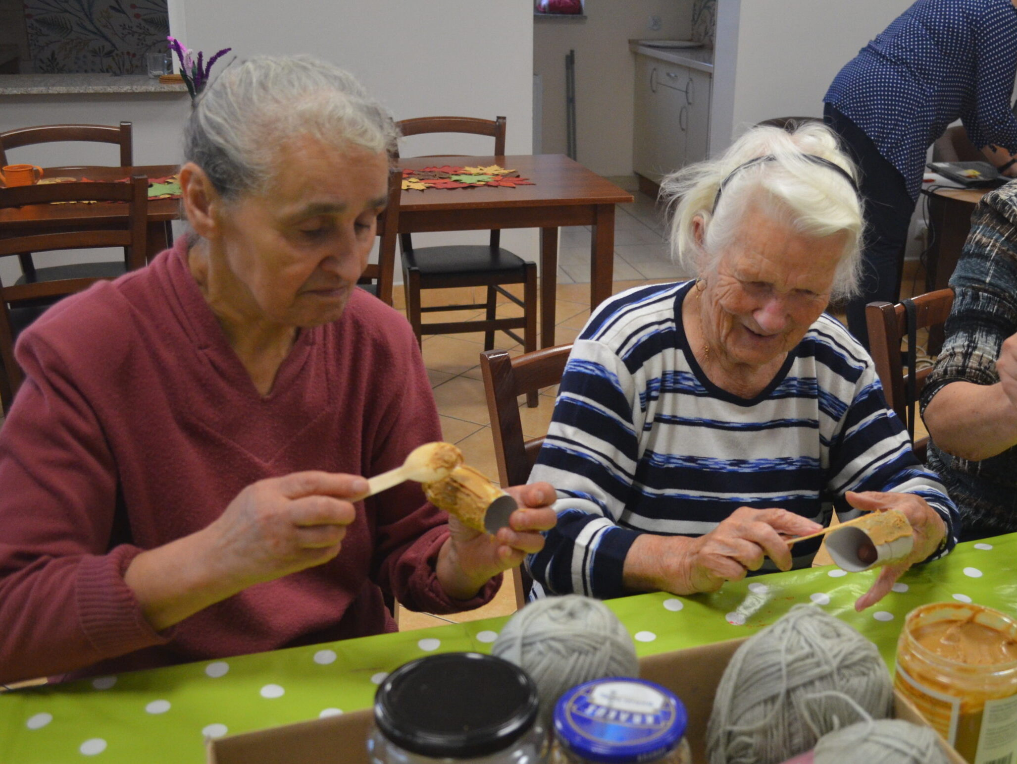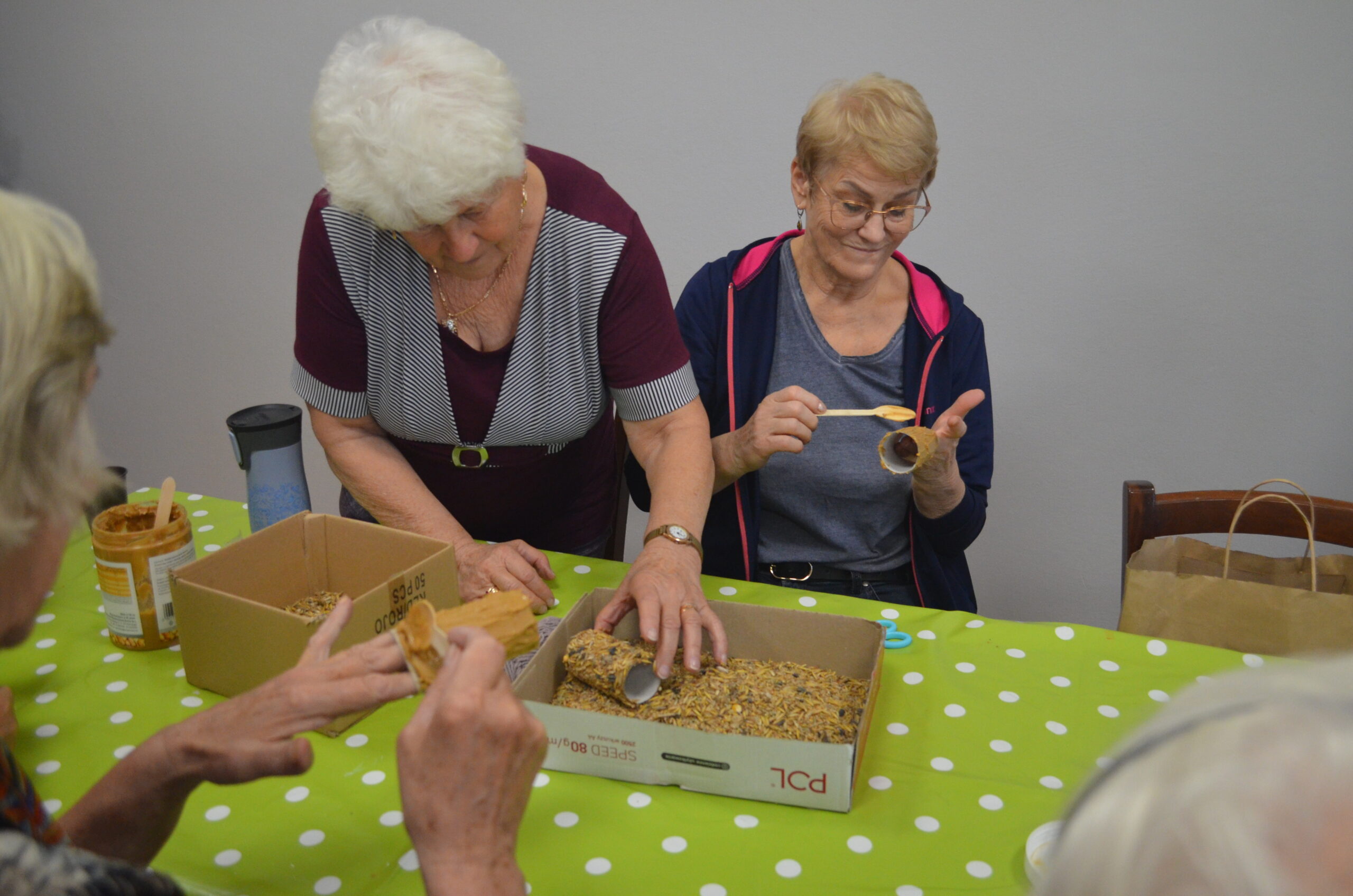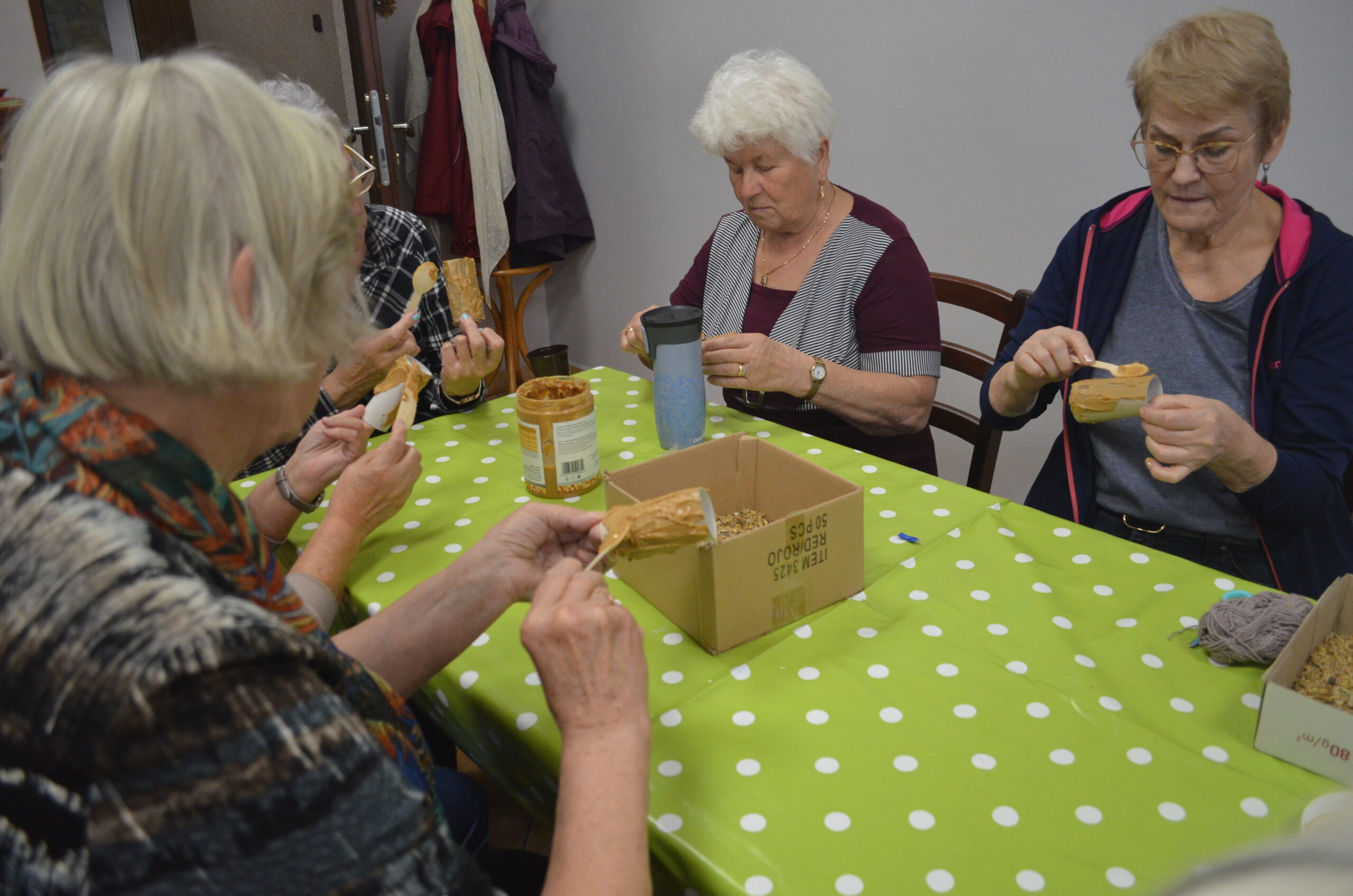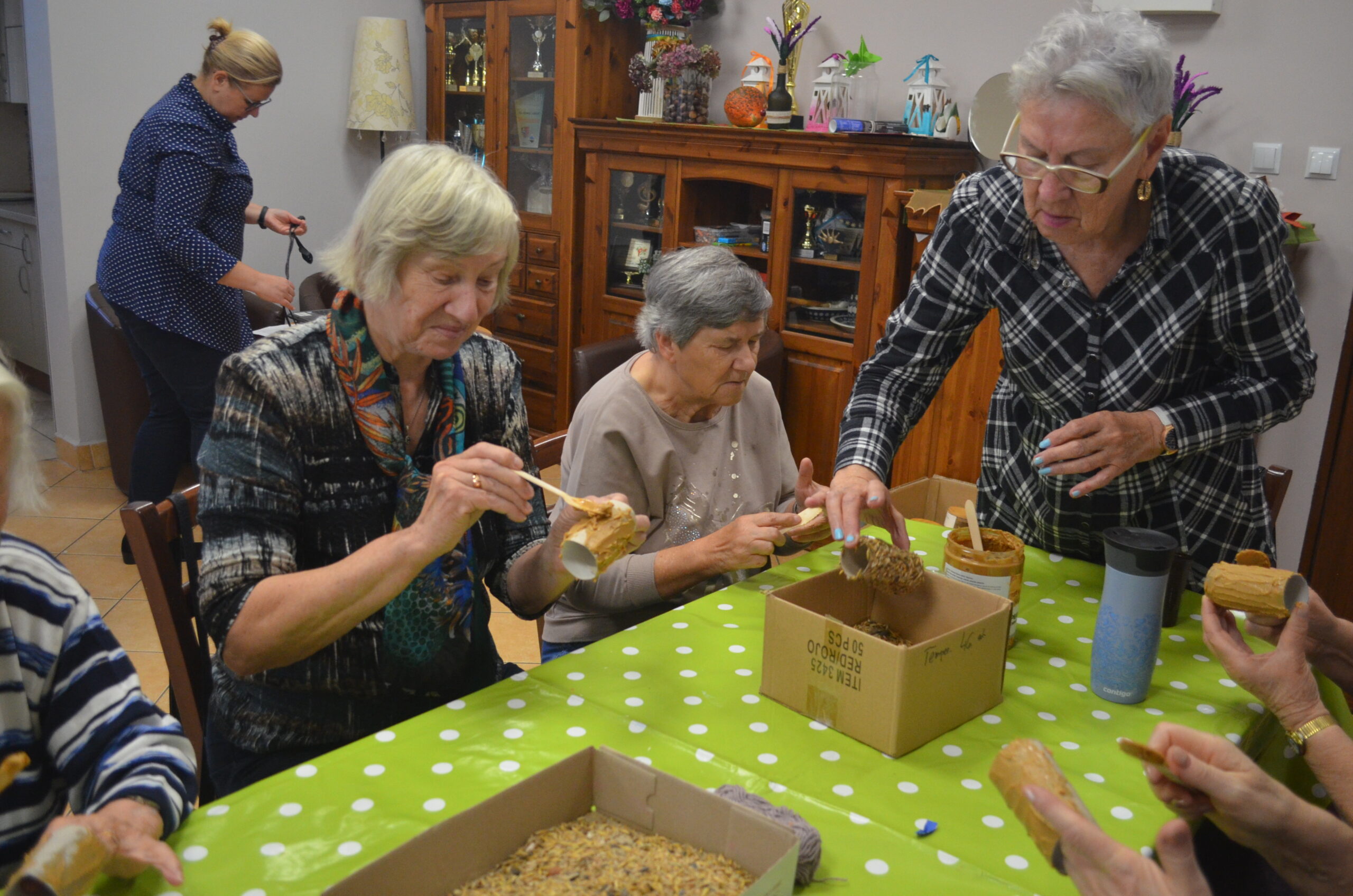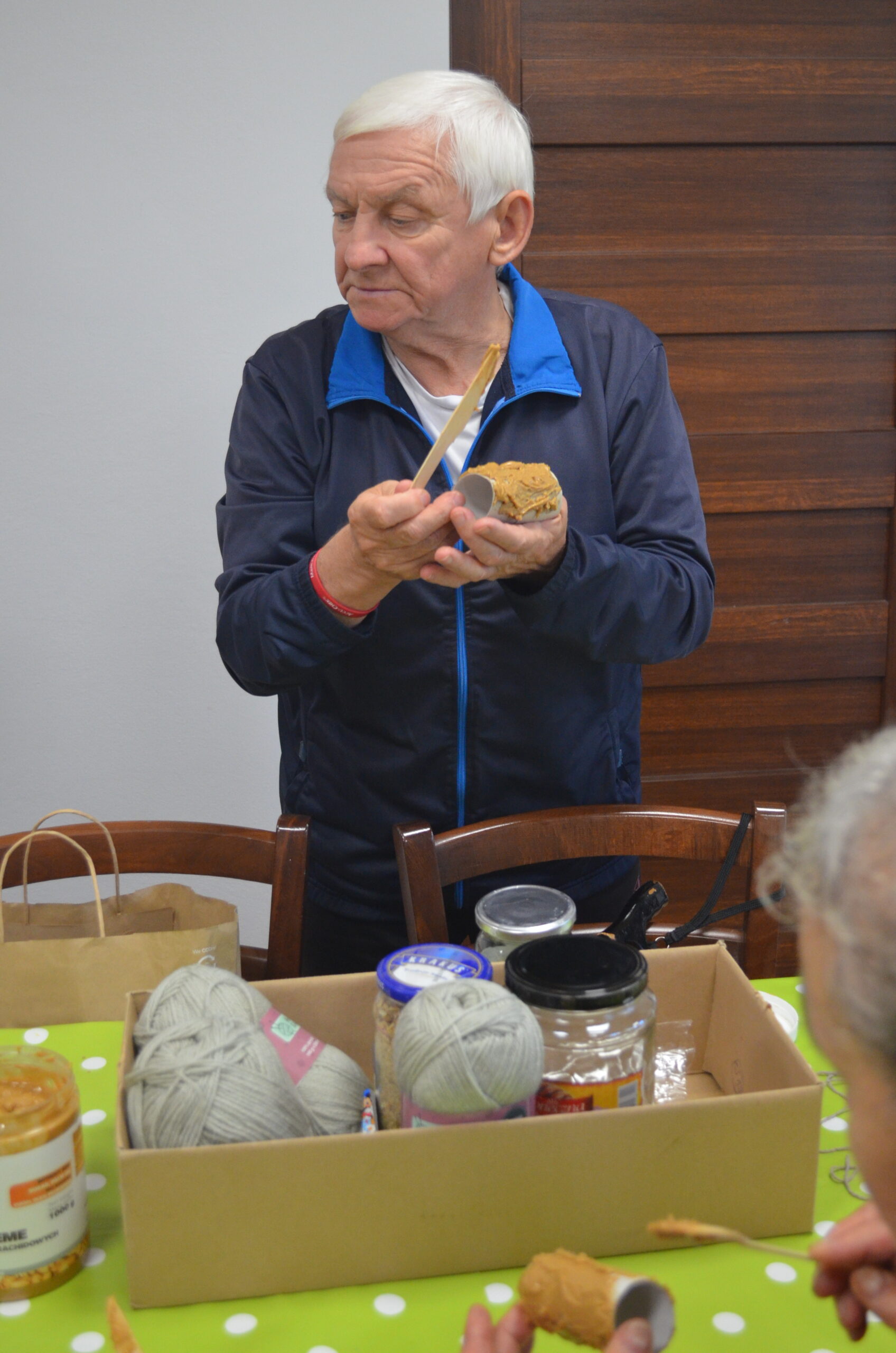 Seniorzy byli zainteresowani spotkaniem i omawianymi tematami, zadawali pytania i uczestniczyli w dyskusji. Pod koniec warsztatów uczestnicy wykonali jeszcze upcyklingowe paśniki dla ptaków na zimę.
